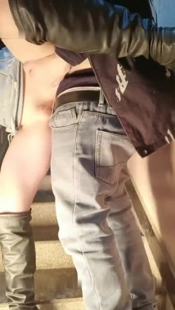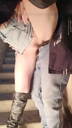 牛仔短裤少妇和炮友楼道激情啪啪 撩起短裤抬腿侧入大力猛操非常诱人
